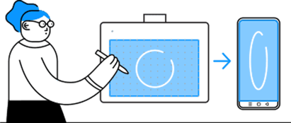 在 Android 8~13 及鸿蒙系统下连接,设备虽然可以使用,但画板感应区域为全域,与手机/平板的比例不一致,从而出现极大的变形和失真,因此不建议用户搭配 Android 8~13 及鸿蒙系统使用 One by Wacom。