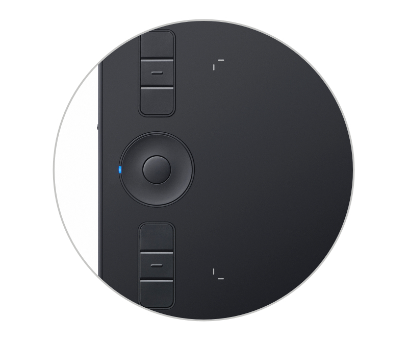 Wacom Intuos Pro 侧面的 6/8 个 ExpressKey 快捷键及触控环默认是不具备功能或随应用程序有指定功能。但与电脑端不同,该按键不可通过驱动进行自定义功能。